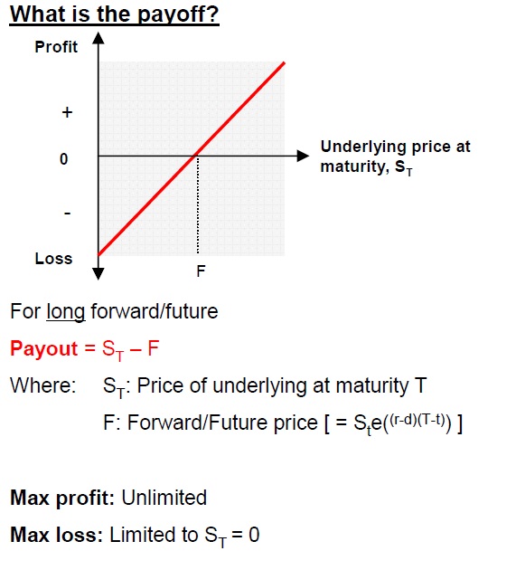 - No actual cash/asset exchanged until maturity of the contract, where P/L is realised in cash.